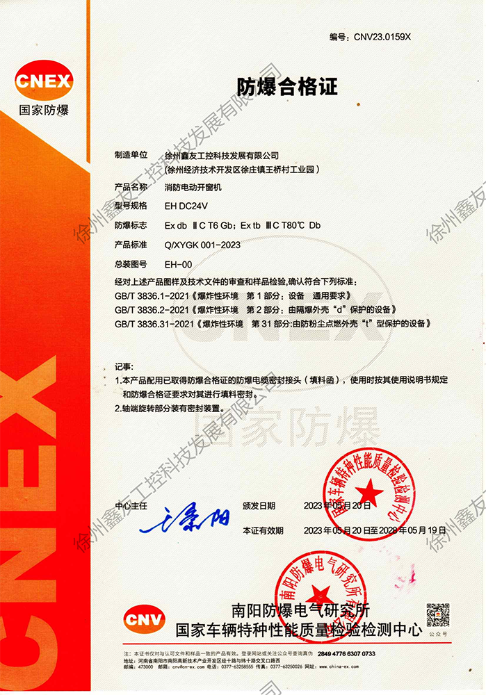 徐州鑫友工控科技發展有限公司成立于2008年,占地31600平方米,全資子公司:江蘇良紫工程科技有限公司,旗下 有“鑫友”及“MASTER.W主人窗控”兩個品牌系列,公司全面貫徹執行IS09001:2015質量管理體系標準,產品順利通過歐盟CE認證和中國***消防電子產品認證,通過可燃性粉塵環境下、爆炸性環境下防爆合格產品檢驗。排煙天窗整窗通過***消防產品質量監督檢驗中心檢測。先后獲得多項******及榮譽證書。集研發、加工、生產、制造、銷售、安裝及售后于一體,是一家高起點、研發能力強的專業智能化***技術企業。